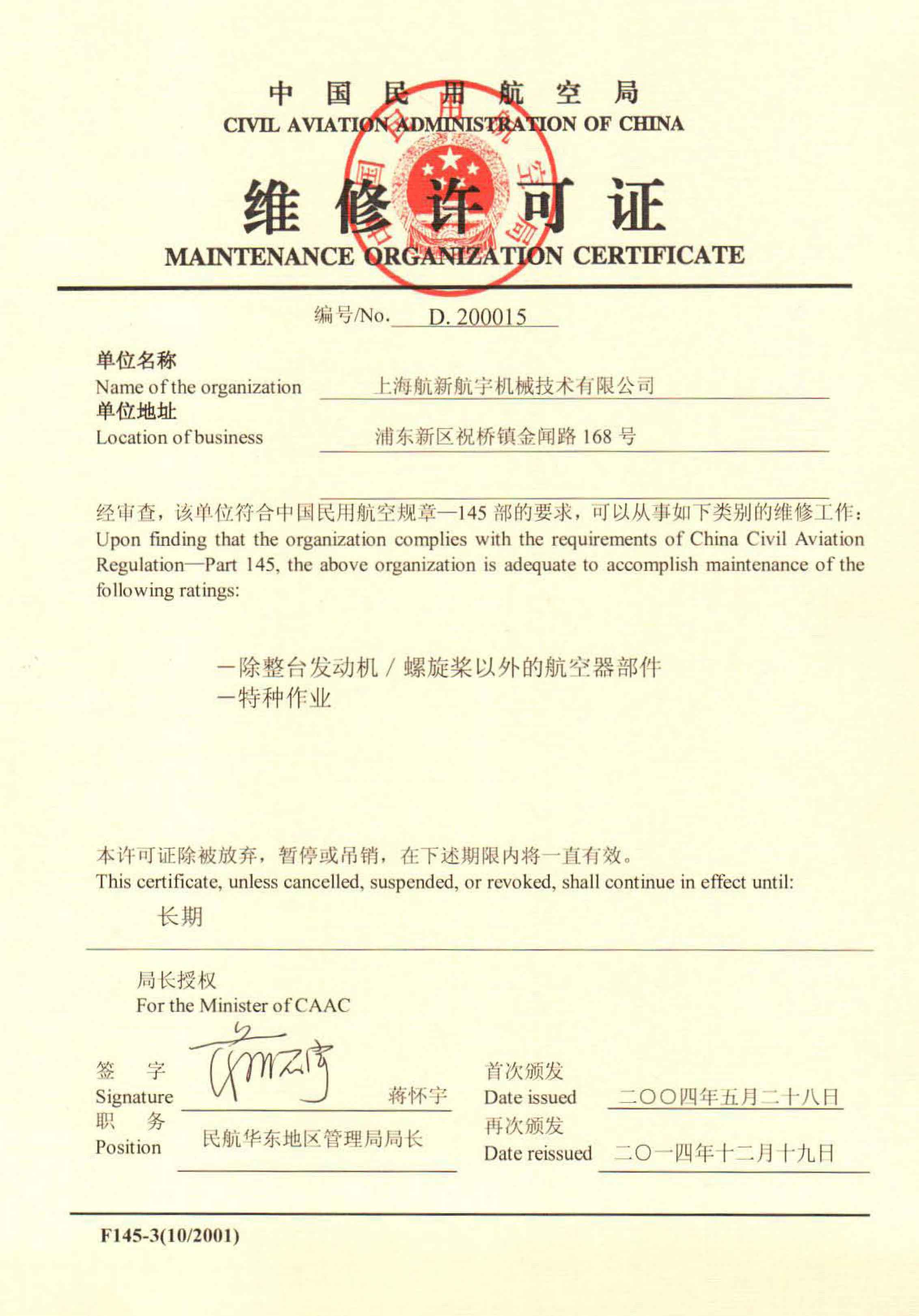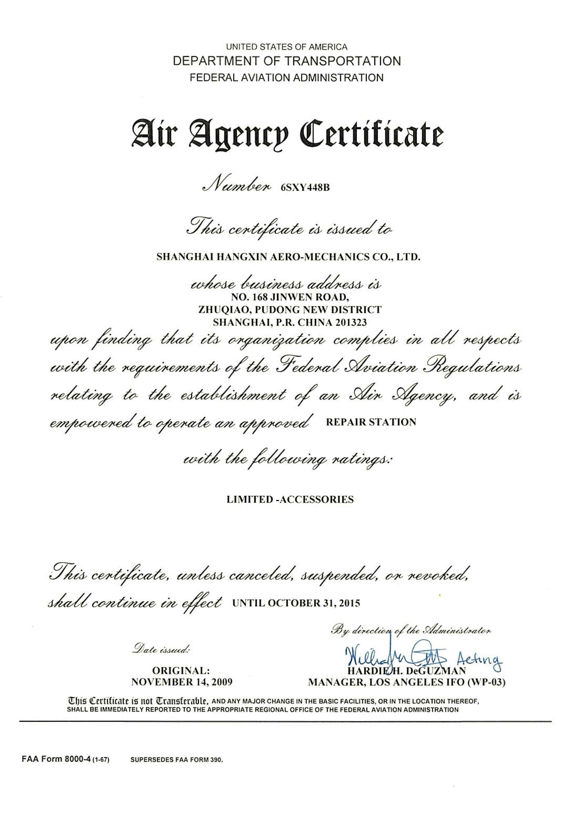FAA Certificate-Shanghai ...